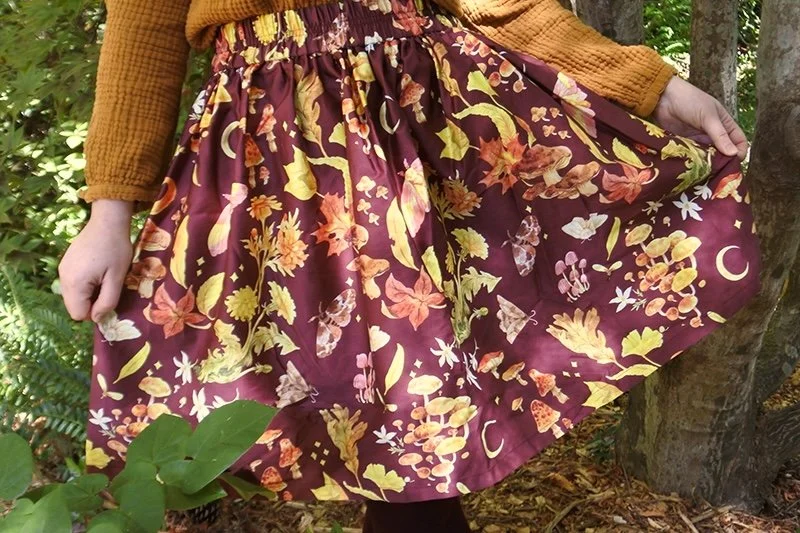 Just because its winter doesn’t mean that you can’t add something with a little bit of fall whimsy to your wardrobe. I love this Autumn Spirits Skirt that showcases Cottonbook’s gorgeous illustrations.